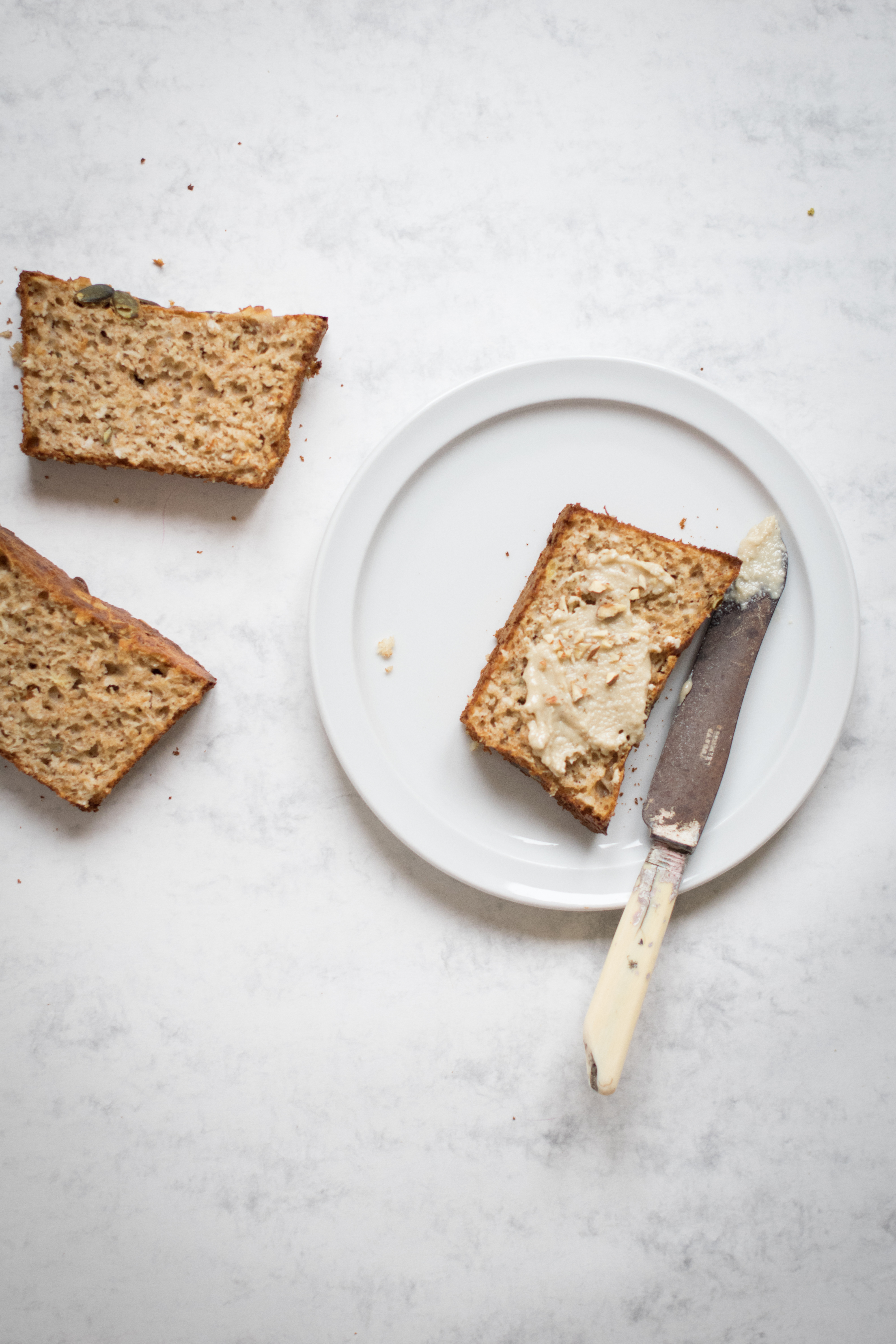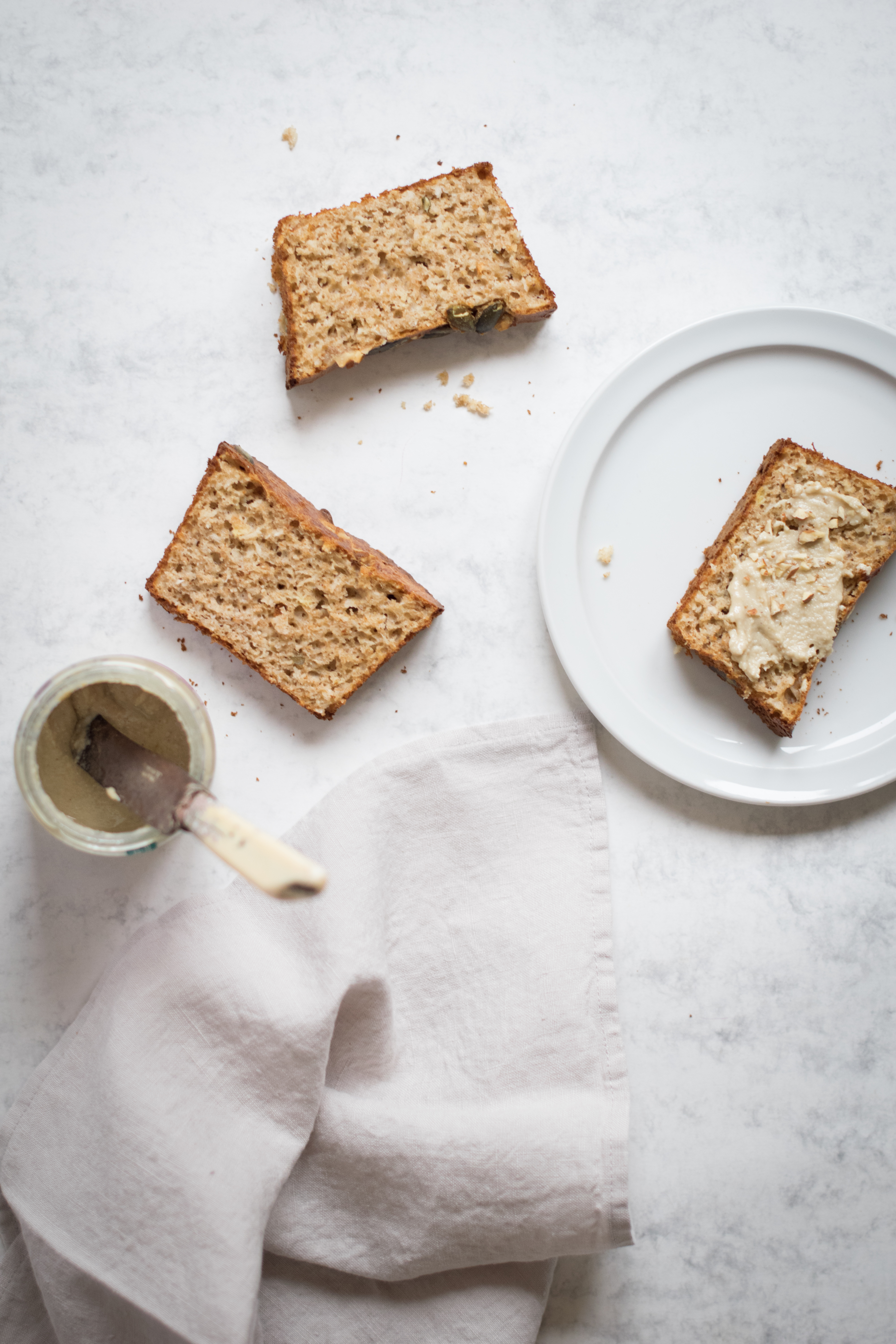 This whole spelt banana and coconut bread is getting dry pretty quickly, so try to eat it within 2 days. In spite of this detail, bread texture is very airy & way lighter than a classic banana bread. As it’s a sugar-free banana bread, you can allow yourself to spread some peanut butter, jam or chocolate paste on your slices!